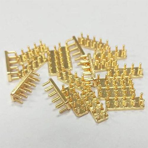 銅柱壓件鍍厚金的過程一般是通過電化學方法完成的。首先,將銅柱壓件作為陽極,將金作為陰極,放置在含有金鹽的電解液中。然后,通過通電,金離子會在銅柱壓件的表面還原成金屬金,形成厚金層。