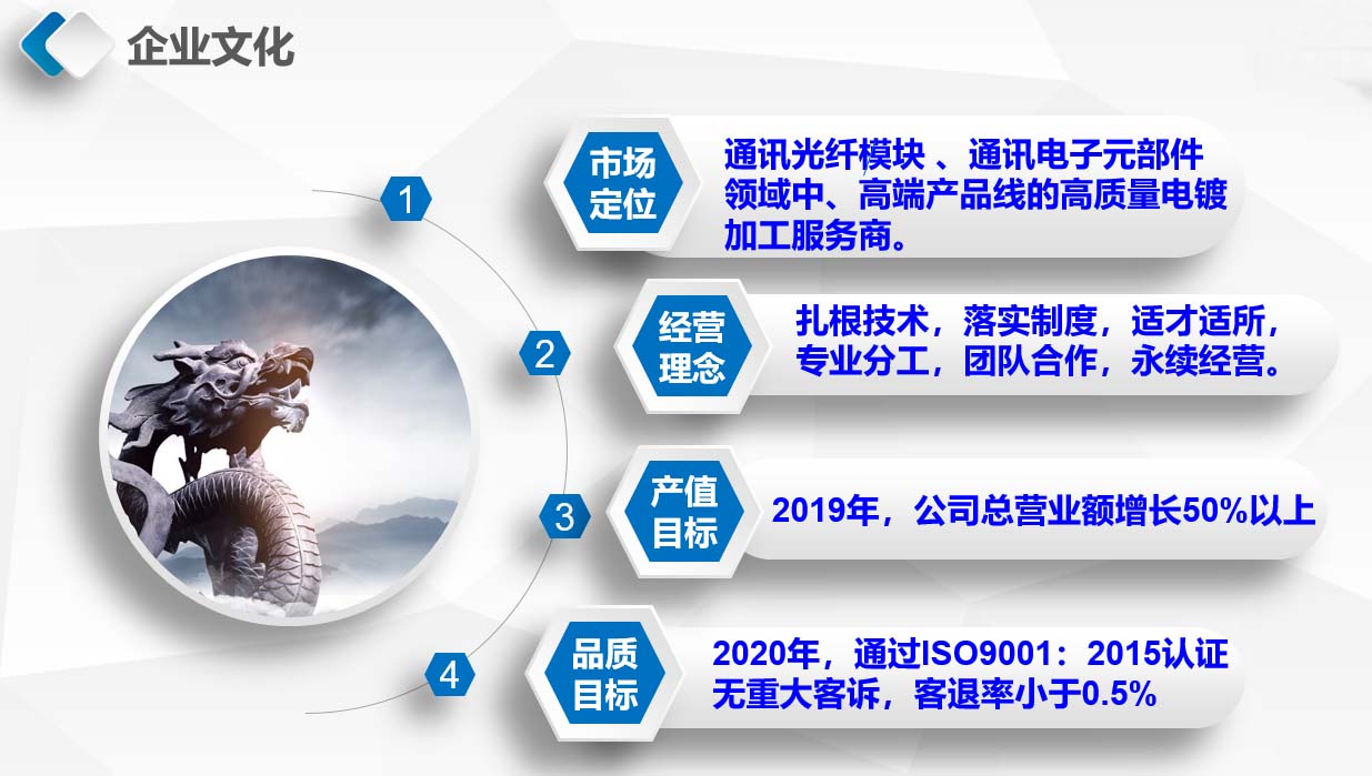 公司專業(yè)承接電子類、通訊、光纖、航空等類精密五金接插件、導(dǎo)電接觸片類,對(duì)導(dǎo)電性、焊錫性、抗蝕性等有要求的行業(yè)。高端產(chǎn)品加工電鍍業(yè)務(wù),致力打造成為光通訊領(lǐng)域中、高端產(chǎn)品線的高質(zhì)量電鍍加工服務(wù)商。